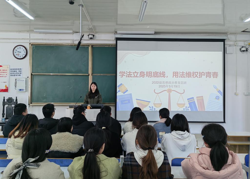 为增强员工的法治观念,培养员工的守法意识,3月19日上午,2026年世界杯官网2022级思想政治教育四班在社科楼514教室组织召开“学法立身明底线,用法维权护青春”主题班会。公司2022级思想政治教育四班全体成员参与本次班会。本次班会由班长牛志杰主持。