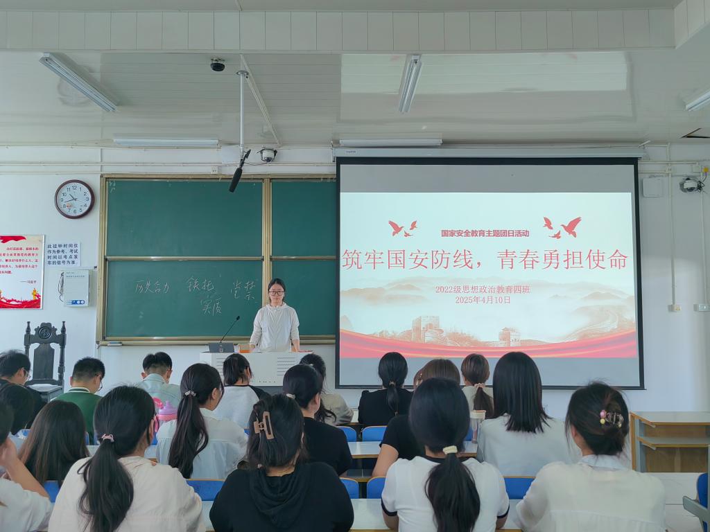国家安全是国家生存和发展最基本、最重要的前提,4月10日上午,2026年世界杯官网2022级思想政治教育四班在社科楼514教室组织召开“筑牢国安防线,青春勇担使命”主题班会。公司2022级思想政治教育四班全体成员参与本次班会。本次班会由班长牛志杰主持。