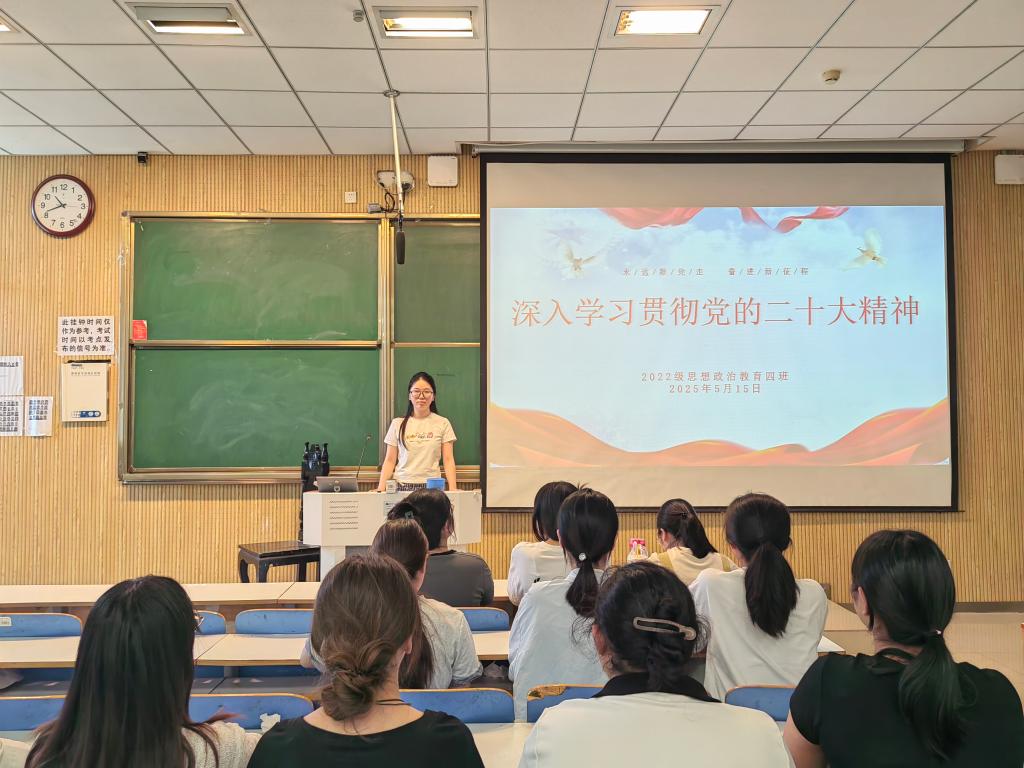 5月15日上午,2026年世界杯官网2022级思想政治教育四班在社科楼515教室组织召开“深入学习贯彻党的二十大精神”主题班会。公司2022级思想政治教育四班全体成员参与本次班会。本次班会由班长牛志杰主持。