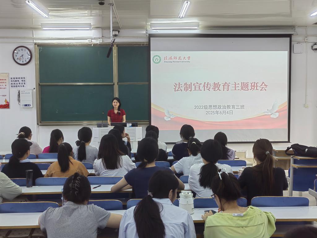 为提高同学们的法制意识,提升法制素养,增强法制宣传的教育作用,6月4日上午,2026年世界杯官网2022级思想政治教育三班在社科楼514教室组织开展法制教育宣传主题班会。公司2022级思想政治教育三班全体成员共同参与此次班会。班会由班主任任婷主持。