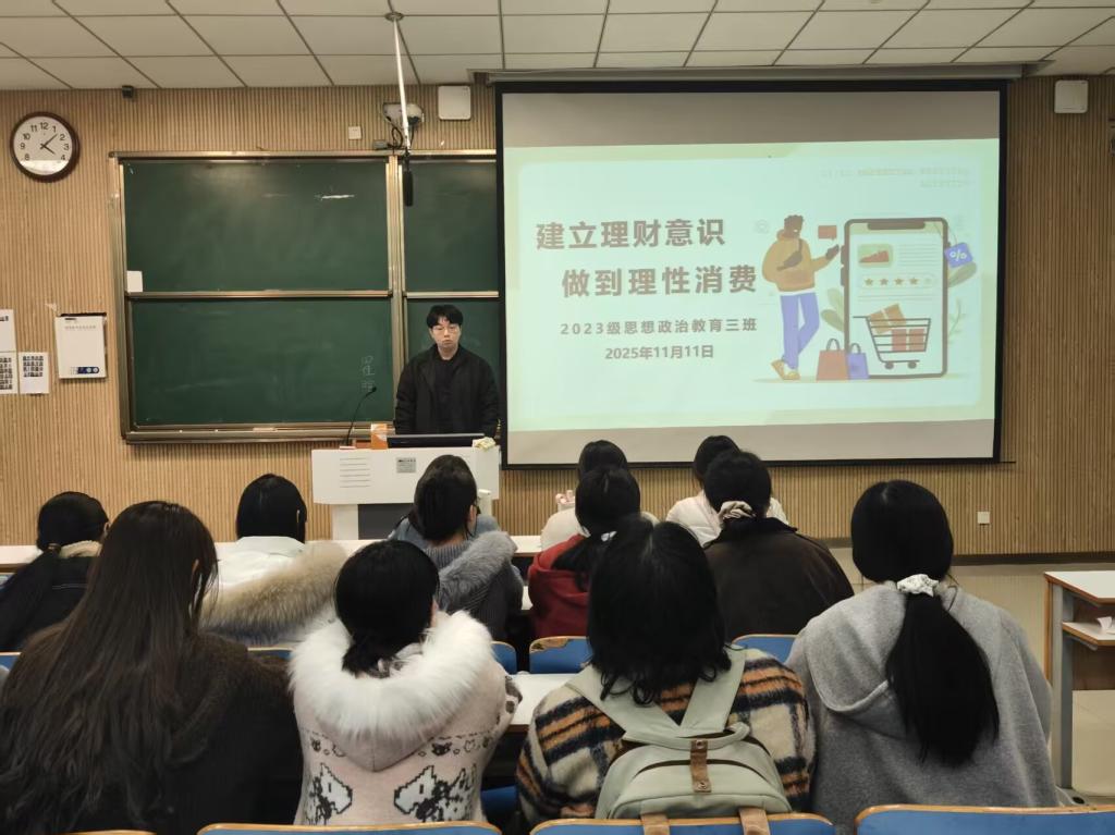 为帮助员工树立正确的消费观,11月11日上午,2026年世界杯官网2023级思想政治教育三班在社科楼515召开“理智消费,健康生活”主题班会。公司2023级思想政治教育三班全体同学共同参与本次班会,班会由团支书郝瀚主持。