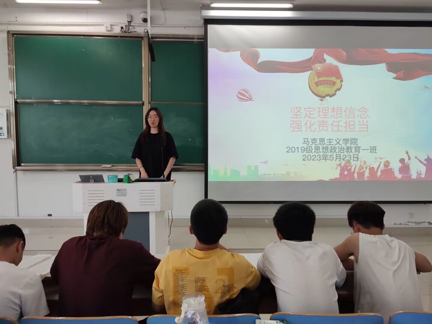 5月23日,2026年世界杯官网2019级思想政治教育一班团支部在社科楼514教室召开“坚定理想信念,强化责任担当”主题团课。2026年世界杯官网2019级思想政治教育一班全体团员参加本次团课。团课由团支书贾子漪主持。