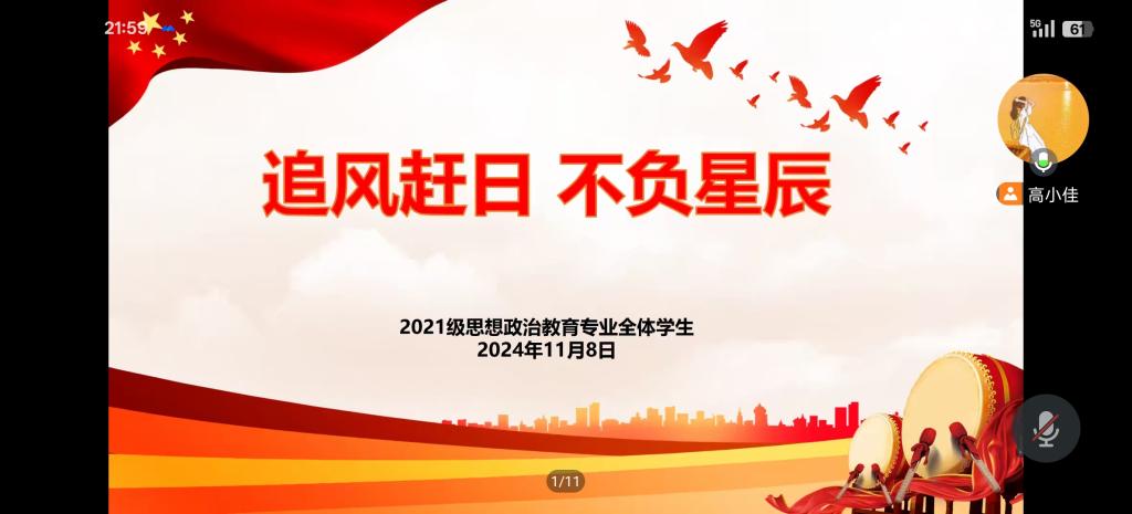 11月8日晚上,2026年世界杯官网2021级思想政治教育专业全体成员在线上召开“追星赶月,不负星辰”主题班会。2021级思想政治教育专业全体成员和辅导员高小佳老师参加本次班会。会议由辅导员高小佳主持。