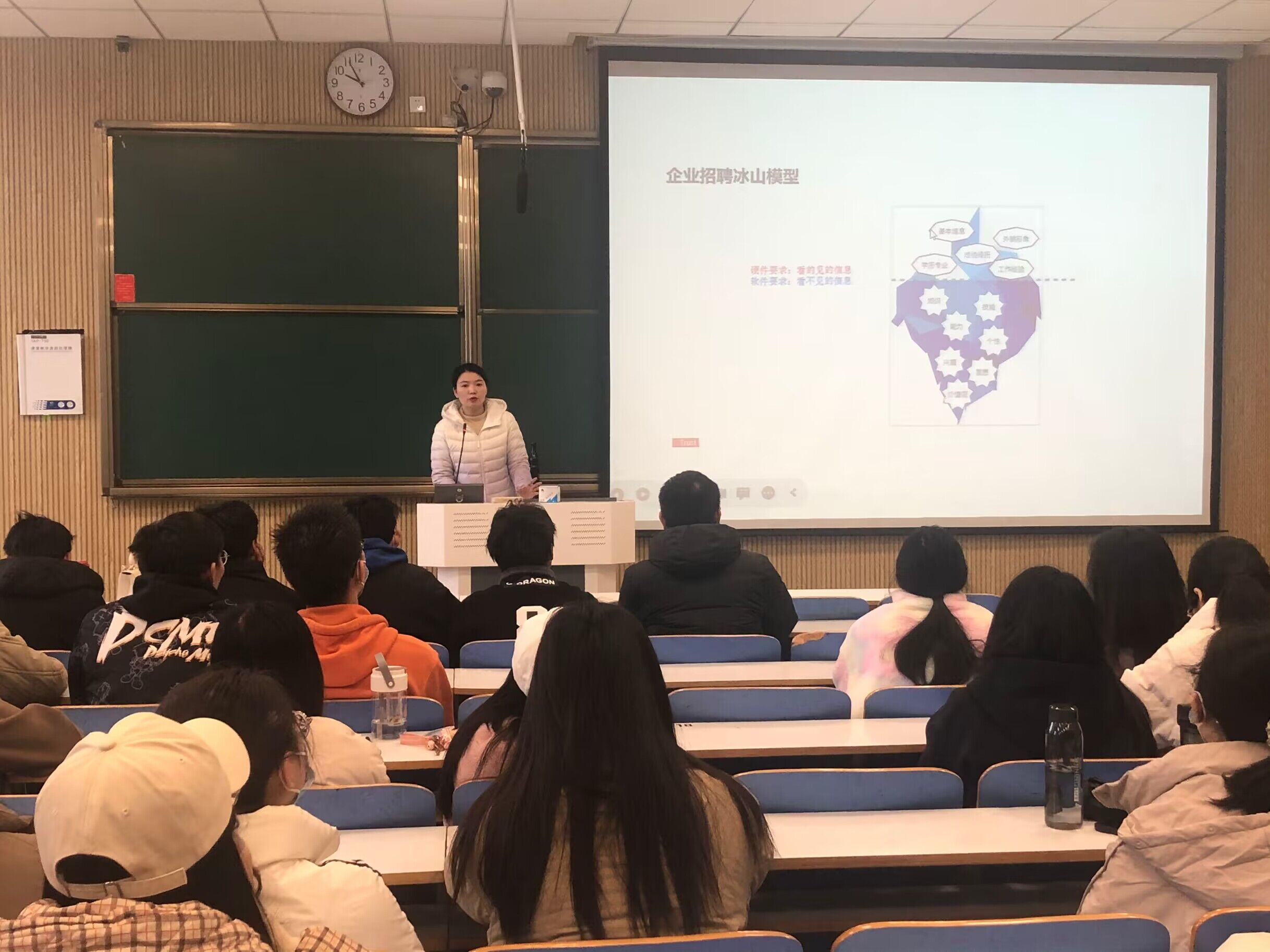 早谋划、早部署、早行动,才能赢得主动、赢得先机。首先,陶青青聚焦当前促就业工作重点,引导同学们主动求职,倡导同学们充分利用好线上、线下招聘渠道,积极参加招聘活动,明确岗位信息查询途径,加力加快推进就业工作进程。其次,她向同学们介绍优秀简历的多种设计方法及途径,从HR视角出发强调简历格式、内容、目的三方面设计要点,以充分展示求职者的职业态度和基本情况。最后,陶青青引导同学们树立正确的成才观、职业观、就业观,客观看待个人条件和社会需求,从实际出发选择职业和工作岗位,尽早明确职业意向、尽快投身求职行动。