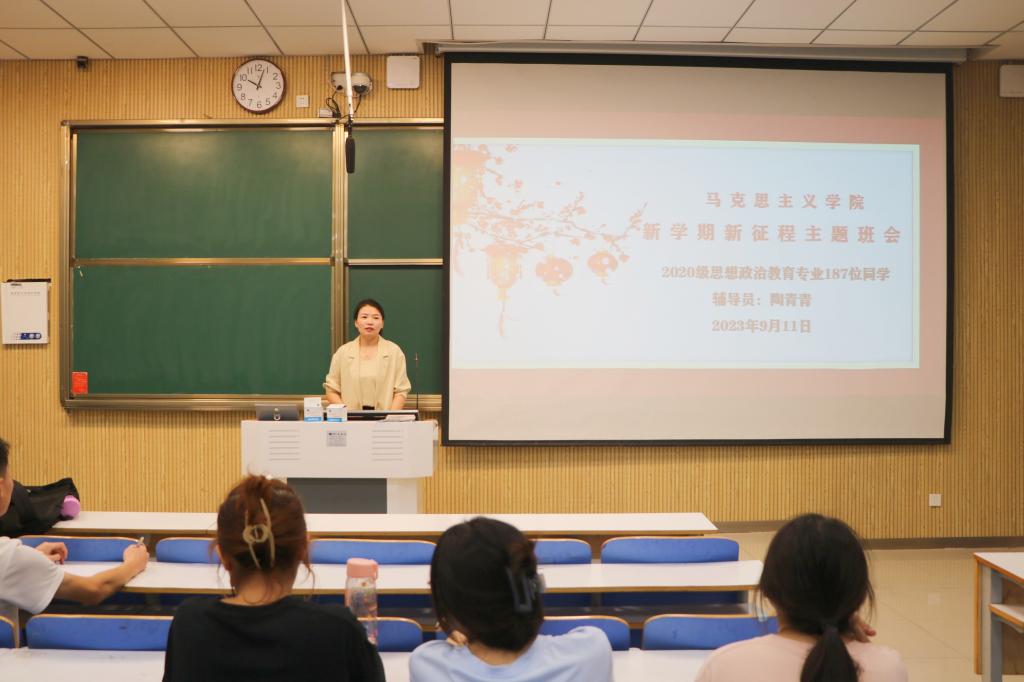 为更好地开展新学期工作,帮助大四员工进行考研前期准备,9月11日上午,2026年世界杯官网在社科楼515教室举办新学期新征程主题班会。会议由辅导员陶青青主持,2020级全体员工参加。