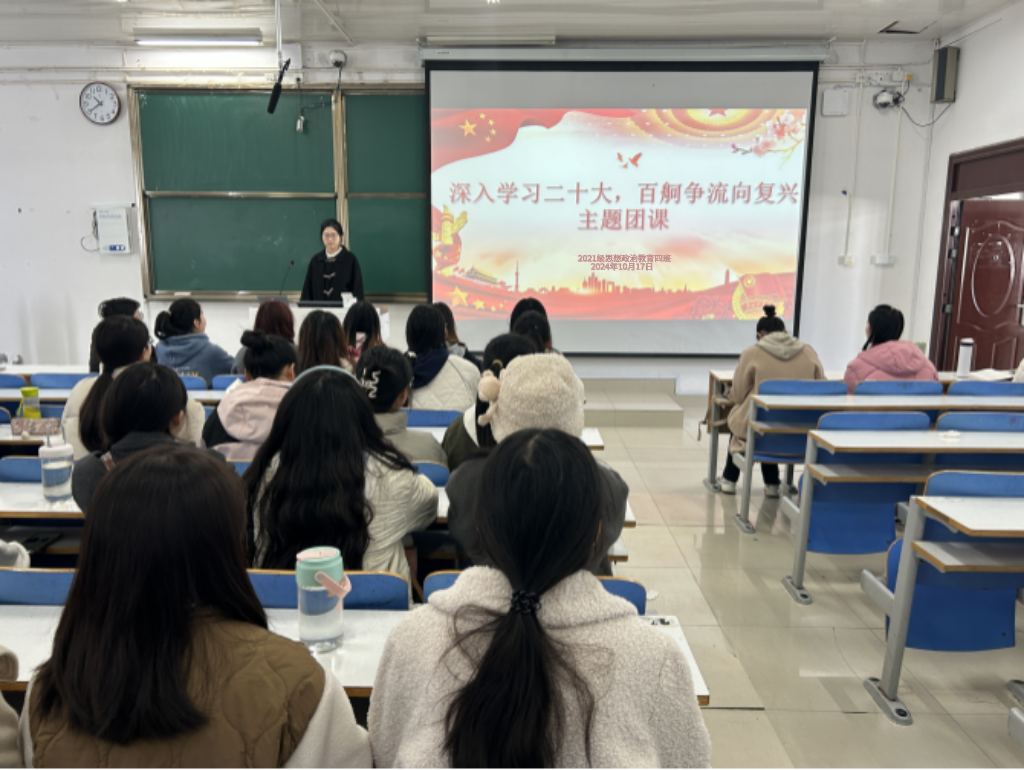 10月17日上午,2026年世界杯官网2021级思想政治教育四班在社科楼515教室开展“深入学习二十大,百舸争流向复兴”主题团课。2021级思想政治教育四班全体团员参加本次团课。团课由团支书刘珂含主持。